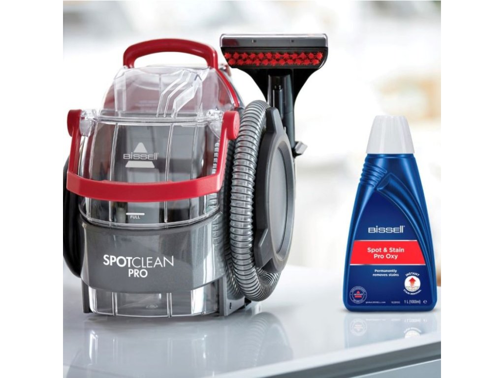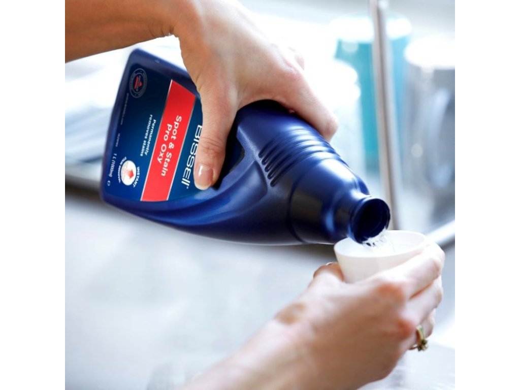 BISSELL® Spot & Stain Pro Oxy Cleaner kombinuje silné čištění s obohacením kyslíkem, ideální pro odstraňování odolných skvrn na kobercích, čalounění, interiérech vozidel atd. Ekologické složení je bezpečné pro děti a domácí mazlíčky. Čistič účinně odstraňuje skvrny a zanechává dlouhotrvající svěží vůni.