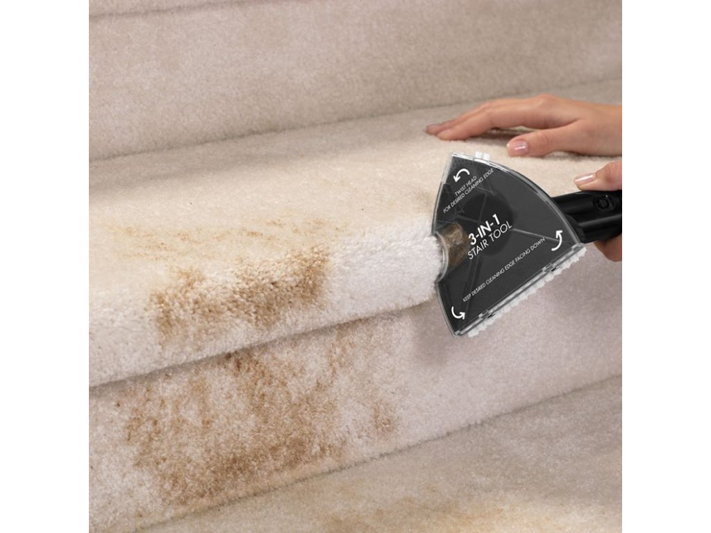 BISSELL® Revolution™ HydroSteam™ je čistič koberců a čalounění ve vaší domácnosti. Odstraňuje hluboko usazené nečistoty, zaschlé i čerstvé skvrny a skvrny. Tento výkonný 1300 W čistič má 3 režimy čištění. Prvním je režim Steam Pretreat, který vám pomůže uvolnit nečistoty nebo oživit vzhled již čistých koberců. Druhý – hlavní režim SteamWash™ Max Clean – kombinuje páru a důkladné čištění pomocí výkonného kartáčování. Poslední je funkce Quick Dry, tedy rychlé schnutí, aby byla vaše podlaha po vyčištění rychle suchá. Pokud se rozhodnete čistit méně přístupná nebo vyvýšená místa, jako jsou schody nebo postele - tomu můžete zařízení snadno přizpůsobit připojením 2,4 m dlouhé hadice a ručního kartáčového nástavce na ni.