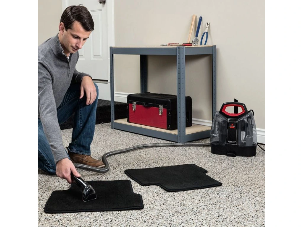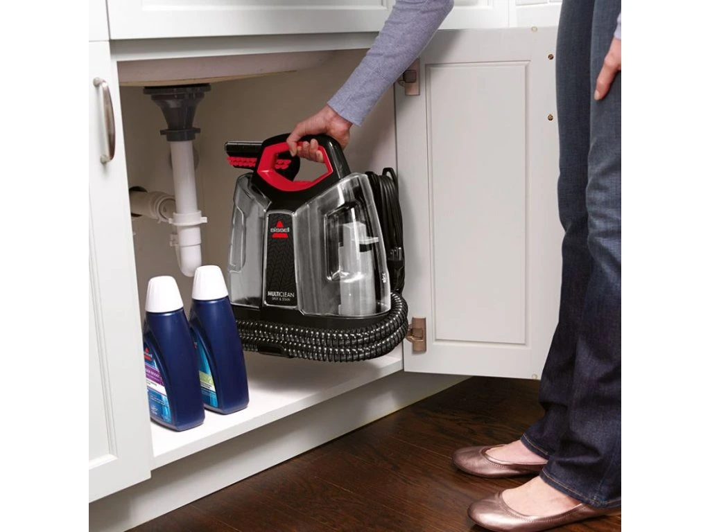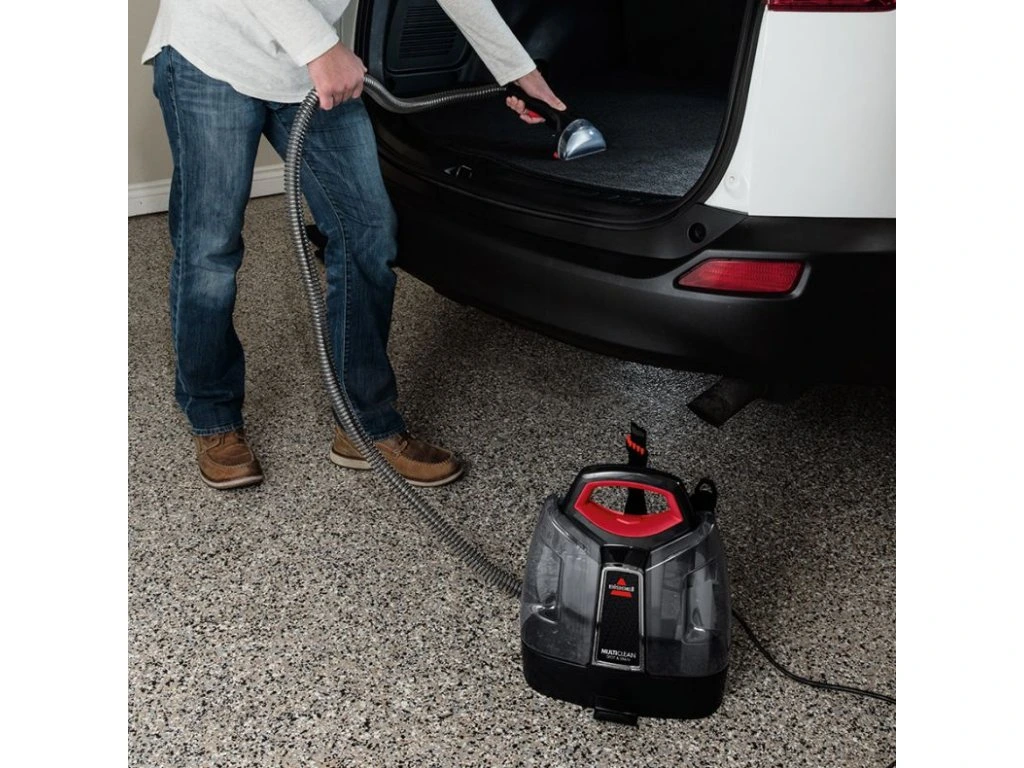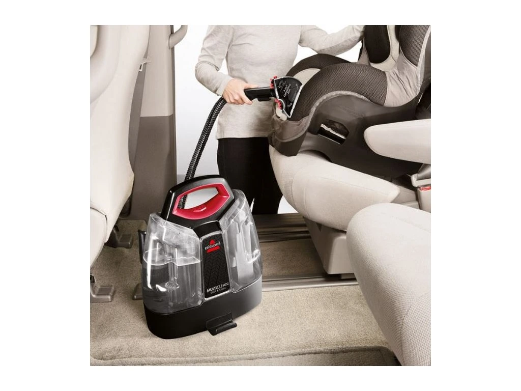 Přenosný čistič koberců a čalounění BISSELL® MultiClean™ Spot & Stain je navržen tak, aby efektivně odstraňoval písek, špínu a jemný štěrk z automobilů a regeneroval sedadla a tkaniny na úroveň.
