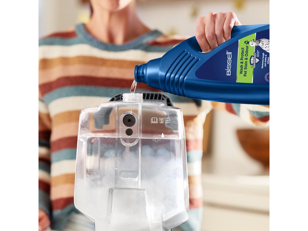 - BISSELL® Wash & Protect Pet Stain & Odour si snadno poradí s hlubokou a odolnou špínou pro domácí mazlíčky.