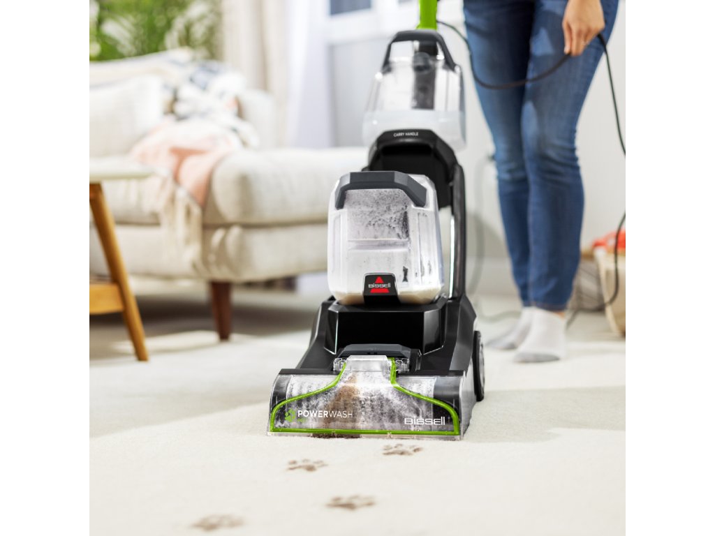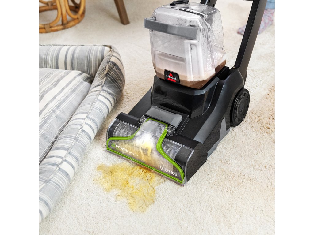 BISSELL® PowerWash Vertikální čistič a čalounění koberců pro domácí mazlíčky je užitečným pomocníkem, který vám ušetří čas a vyčistí více než jen váš koberec. Jeho 2,1 m hadici, 8 cm odolný nástavec na skvrny a štěrbinový rozprašovací nástavec lze použít na těžko přístupných místech, jako jsou schody, stejně jako při čištění postelí nebo soklových lišt. Lehký a snadno ovladatelný design zajišťuje snadné a účinné odstranění hlubokých nečistot a zvířecích alergenů v celém domě.