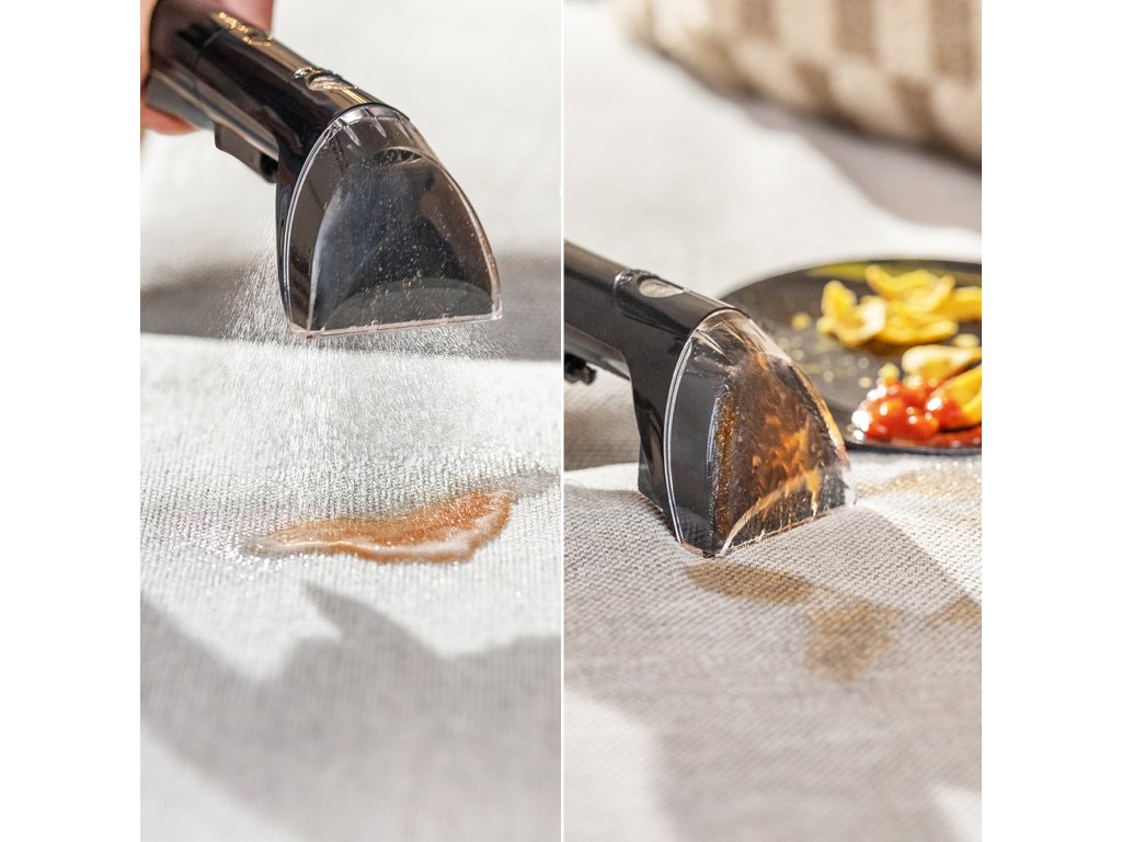 - VÍCE NEŽ JEN ČIŠTĚNÍ PODLAH. 2,1 m hadice, 8 cm odolný nástavec na skvrny a nástavec na rozprašování štěrbin vám usnadní čištění soklových lišt, schodů, čalounění, pelíšků pro domácí mazlíčky a dalších.