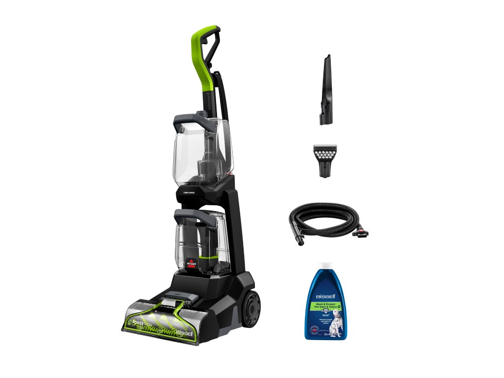 BISSELL® PowerWash Vertikální čistič a čalounění koberců pro domácí mazlíčky je užitečným pomocníkem, který vám ušetří čas a vyčistí více než jen váš koberec. Jeho 2,1 m hadici, 8 cm odolný nástavec na skvrny a štěrbinový rozprašovací nástavec lze použít na těžko přístupných místech, jako jsou schody, stejně jako při čištění postelí nebo soklových lišt. Lehký a snadno ovladatelný design zajišťuje snadné a účinné odstranění hlubokých nečistot a zvířecích alergenů v celém domě. Užijte si čistý domov s 600W sáním, 4řadým kartáčem DeepReach™ Powerbrush a čističem BISSELL® Wash & Protect Pet Stain & Odour pro zachycené zbytky a odolné skvrny od domácích mazlíčků. Objemná nádoba na čistou vodu o objemu 3,8 l vyžaduje méně doplňování a spolu s 25 cm širokou hlavou vám ušetří námahu s úklidem domácnosti.