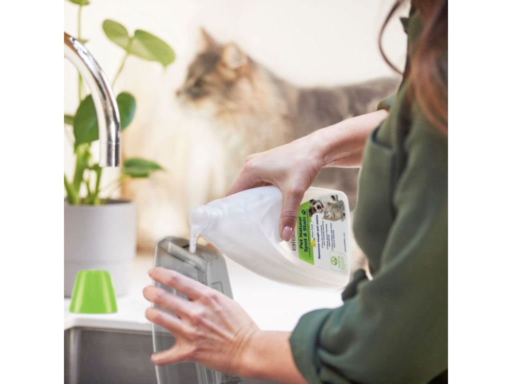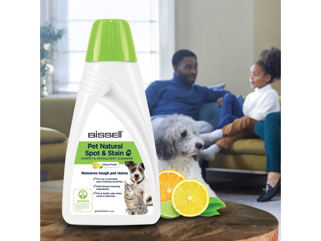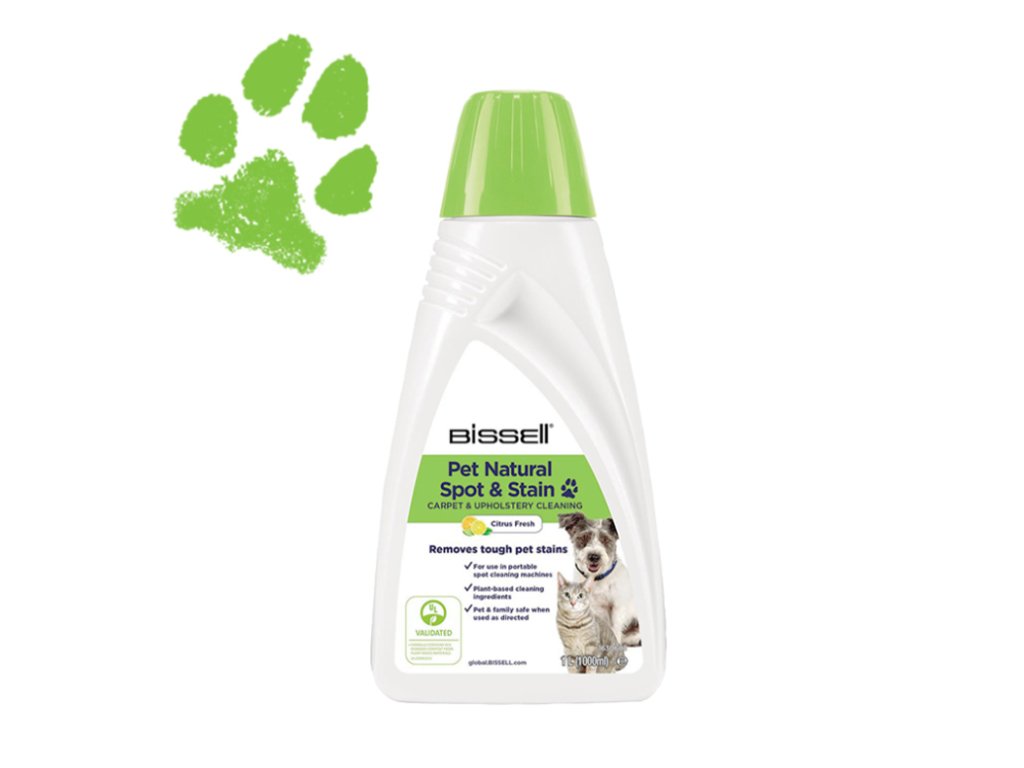 BISSELL® Pet Natural Spot & Stain je rostlinný čistič, který účinně odstraňuje skvrny a pachy způsobené domácími mazlíčky z různých povrchů. Díky svému ekologickému složení a patentované technologii neutralizace zápachu zanechá čistič váš domov svěží a čistý. Výrobek je bezpečný pro použití v blízkosti dětí a domácích zvířat.