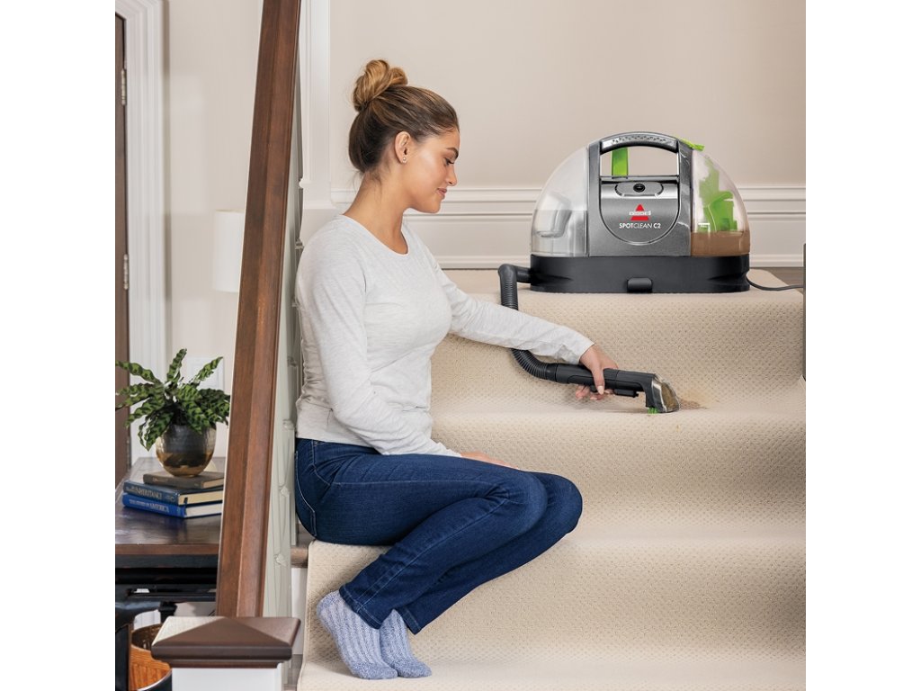 Dokonalý společník pro každodenní čištění ve vašem domově. BISSELL SpotClean® C2 je přenosný čistič koberců a čalounění v praktickém a skladném designu.