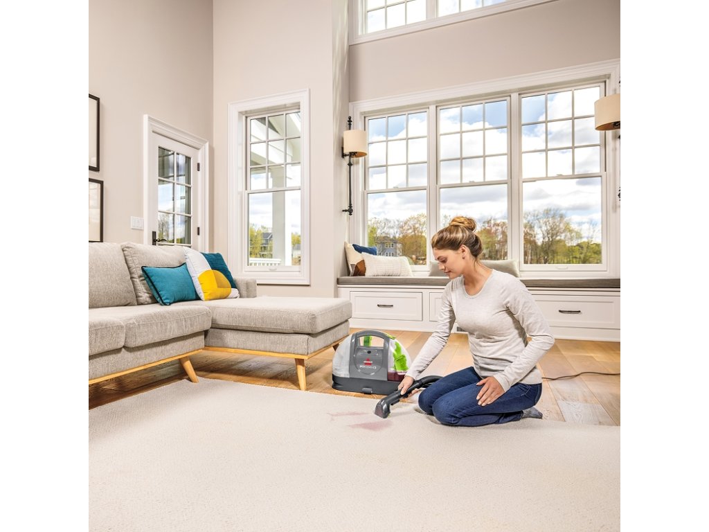 Dokonalý společník pro každodenní čištění ve vašem domově. BISSELL SpotClean® C2 je přenosný čistič koberců a čalounění v praktickém a skladném designu. Kombinací silného sání, drhnutí a speciálně vyvinutého BISSELL čisticího roztoku si tento přístroj poradí s fleky a nečistotami v každé části vašeho domova. Skvrny odstraní z čalounění, koberců, koberečků a dalšího. Tepovač má technologii dvou nádrží, takže čistá voda a špinavá voda jsou odděleny, což znamená, že můžete čistit s jistotou a nikdy nepřijdete do kontaktu se špinavou vodou. Díky své velikosti lze SpotClean® C2 snadno uložit i do menší skříně nebo třeba kufru auta.