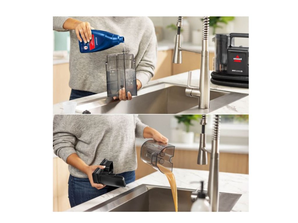 Výkonný 400 W čistič a čalounění koberců BISSELL® SpotClean® C5 Select je nepostradatelným společníkem pro snadné odstraňování skvrn a skvrn ve vaší domácnosti. Stačí jen nastříkat skvrny připraveným roztokem, vykartáčovat a nepořádek vysát. Odstraňte nečistoty z čalounění, koberců, předložek, pelíšků pro domácí mazlíčky a interiérů automobilů. Díky extra dlouhé vestavěné hadici s 10 cm kartáčovým nástavcem Tough Stain Tool se dostanete kamkoli potřebujete. Lehká konstrukce pro snadnou manipulaci a kompaktní velikost pro bezproblémové skladování. Díky systému dvou samostatných nádrží je čistá a špinavá voda udržována odděleně, takže vždy čistíte s čistým roztokem. Baleno s BISSELL Spot & Stain Pro Oxy.