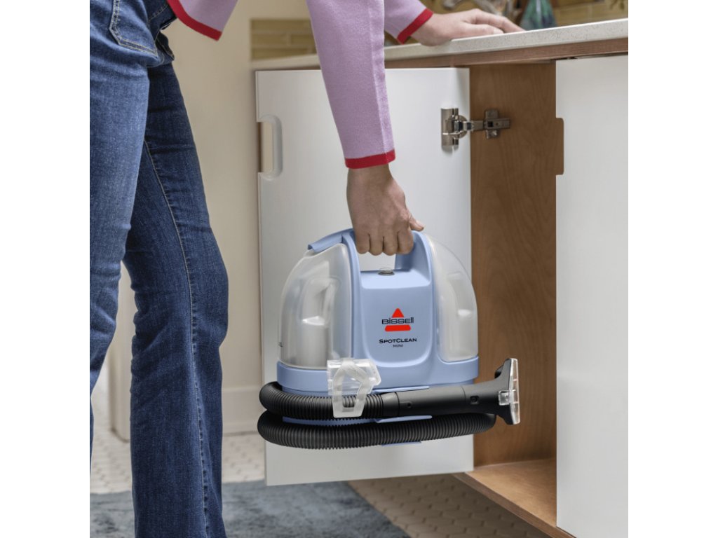 Ušetřete místo, aniž byste museli ohrozit své čisticí schopnosti. Nastříkejte, vykartáčujte a odstraňte odolný nepořádek ze všech druhů povrchů pomocí přenosného čističe koberců a čalounění BISSELL® SpotClean® Mini. SpotClean® Mini je náš dosud nejlehčí a nejkompaktnější přenosný hloubkový čistič, který vám usnadní přístup do těžko přístupných oblastí čištění, jako jsou schodiště a interiéry automobilů.
