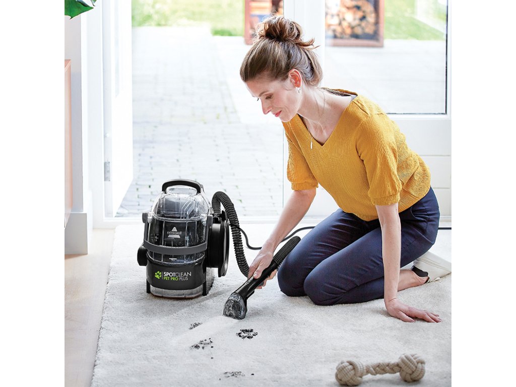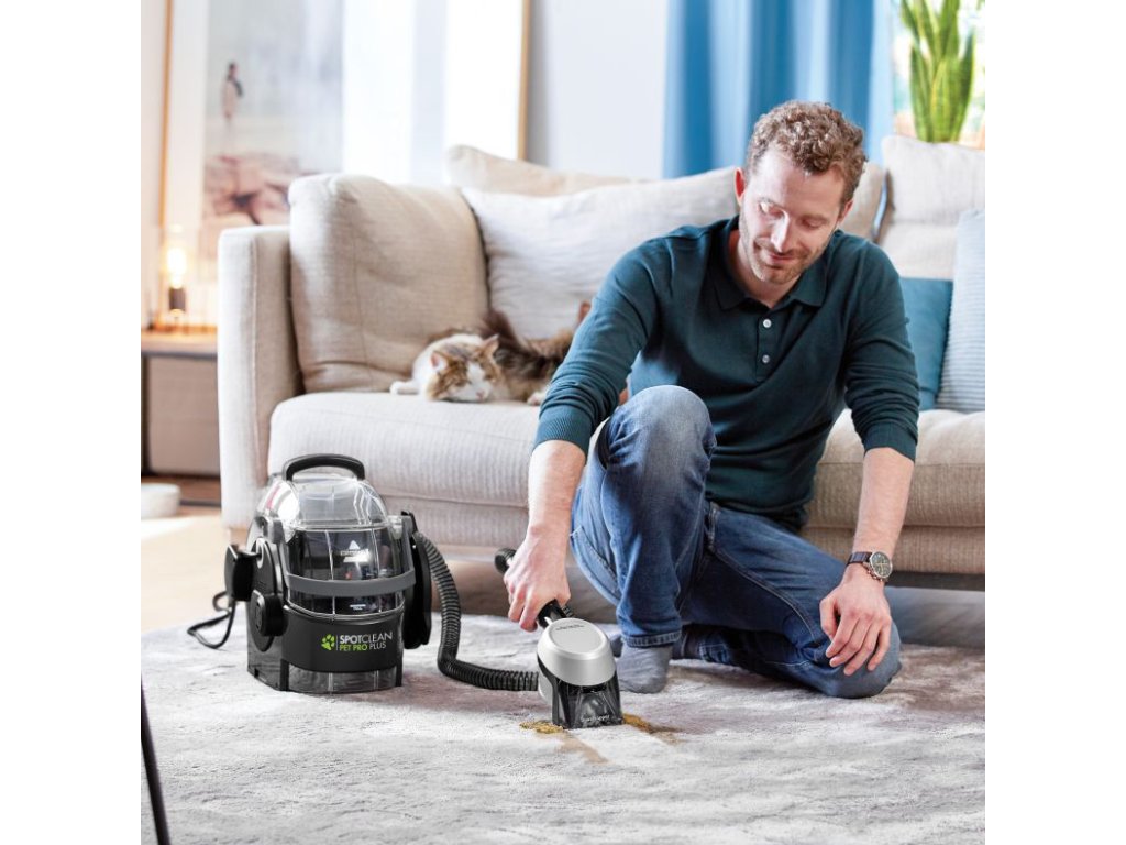 Odstraňte odolné skvrny a pachy domácích mazlíčků jako profesionál pomocí BISSELL® SpotClean Pet Pro Plus.