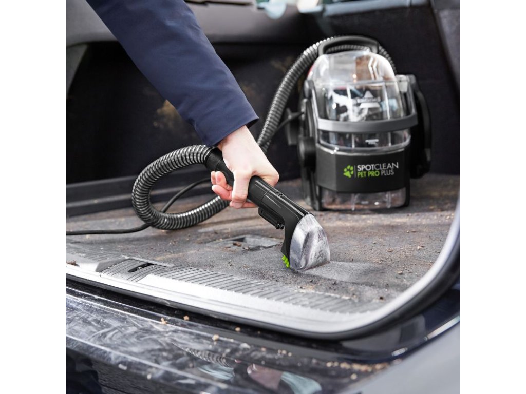 Přenosný čistič koberců a čalounění BISSELL® SpotClean Pet Pro Plus je naším nejúčinnějším čističem odolných skvrn, skvrn a pachů od domácích mazlíčků. Využívá trojitou kombinaci vynikajícího odsávání, drhnutí a speciálně vyvinutých čisticích roztoků BISSELL® k odstranění odolných skvrn a nahromaděných nečistot. Snadno vyčistí koberce, rohože, čalouněná schodiště, pohovky, postele, interiéry aut a další měkké povrchy. Pyšní se výkonným 750W motorem, dvěma samostatnými velkými nádržemi na čistou a použitou vodu, vestavěnou hadicí o délce 1,5 m a extra dlouhým přívodním kabelem o délce 7,5 m. Štětcový nástavec 8 cm využijete pro každodenní odstraňování skvrn, nástavec Stain Trapper roztok na skvrny nastříká, vykartáčuje a následně vysaje. Speciální nástavec HydroRinse je určen pro snadné čištění zařízení po čištění.