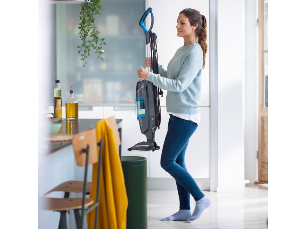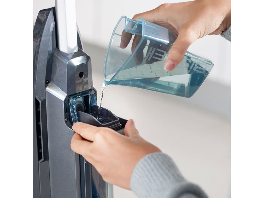 Vysávejte a dezinfikujte tvrdé podlahy současně pomocí páry, která zlikviduje až 99,9 % všech škodlivých mikroorganismů v celém bytě pouze pomocí vody. Snadné, účinné a efektivní! Vysavač má zabudovaný vodní filtr pro odstranění veškerých nečistot obsažených ve vodě z vodovodu. Technologie suché nádrže udržuje nečistoty v nádobě na prach vždy zcela suché a mimo páru. Jednoduchá funkce vysavače, pomocí vyprazdňovacího tlačítka, pomůže jednoduše a snadno odstranit nečistoty z nádoby po použití zařízení. Oba sací filtry – pěnový i skládaný – jsou omyvatelné a zachycují jemný prach a nečistoty, aby bylo zajištěno, že zpět do místnosti bude vháněn pouze čistý vzduch