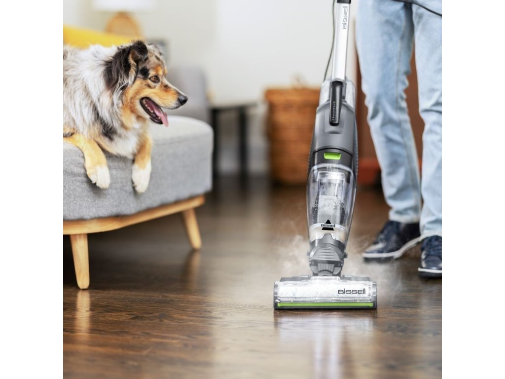 Univerzální čisticí prostředek BISSELL ® CrossWave ® HydroSteam ™ Pet Select je dokonalým společníkem při úklidu, zejména pro domácnosti s chlupatými mazlíčky. Vysává, vytírá a suší v jednom kroku, navíc má možnost parního režimu pro opravdu efektivní úklid odolného a pevně přichyceného nepořádku. Univerzální čisticí prostředek BISSELL ® CrossWave ® HydroSteam ™ Pet Select je dokonalým společníkem při úklidu, zejména pro domácnosti s chlupatými mazlíčky. Vysává, vytírá a suší v jednom kroku, navíc má možnost parního režimu pro opravdu efektivní úklid odolného a pevně přichyceného nepořádku. Parní technologie HydroSteam™ si poradí se zaschlými a lepkavými nečistotami až o 20 % lépe. Tento víceúčelový čistič je ideální pro čištění všech tvrdých podlah a může dokonce osvěžit vzhled vašich koberců. Díky síťovému provozu nikdy nehrozí, že nebude připraven k použití. Disponuje praktickým LED osvětlením, díky kterému uvidíte opravdu všechen prach, špínu i vlasy. Technologie Tangle-Free minimalizuje navíjení vlasů a vlasů na kartáčový váleček, aby byla zajištěna jeho údržba a životnost co nejdelší. Na rozdíl od mopu a kbelíku díky technologii dvou nádrží vždy vytřete čistou vodou, protože udržují čistou a špinavou vodu odděleně.