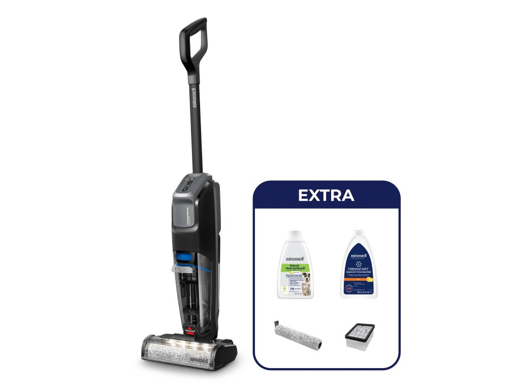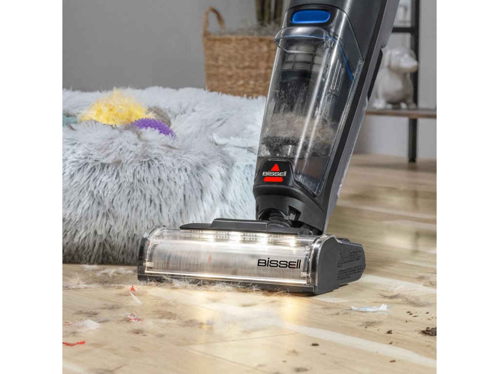 Ušetřete čas s akumulátorovým vysavačem BISSELL® CrossWave® OmniFind™ Pro na všechny typy povrchů, se kterým můžete snadno vysávat a vytírat v jednom kroku. Je vybaven patentovaným osvětlením hlavy FurFinder™ nastavitelným na dlouhé i krátké vzdálenosti, což ocení zejména majitelé domácích mazlíčků.