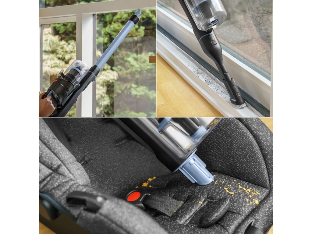 - Provedení 3 v 1 – tyčový vysavač, ruční vysavač, volně stojící provedení.
