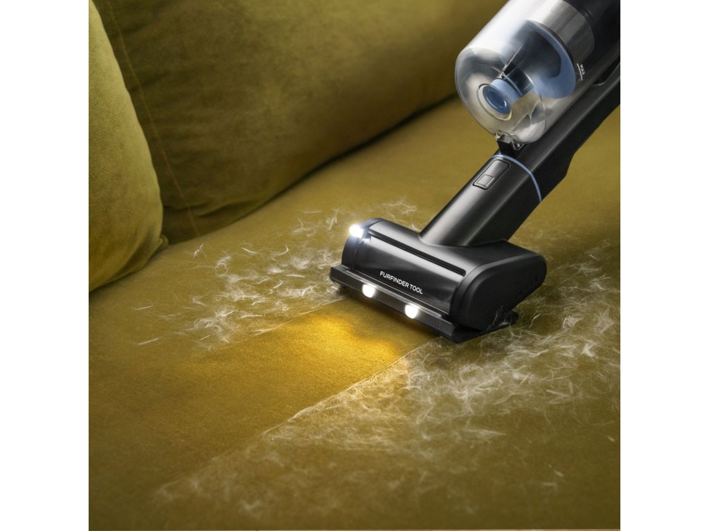 BISSELL® PowerClean FurFinder™ Pro je výkonný 200W akumulátorový tyčový vysavač navržený speciálně pro domácnosti s domácími mazlíčky. Díky patentovanému LED osvětlení FurFinder™ osvětluje skrytá místa a odhaluje vlasy a nečistoty. Speciální nástroj FurFinder™ Tool odstraňuje až 95 % nahromaděných chlupů z čalounění, 2× rychleji než konkurenční produkty.
